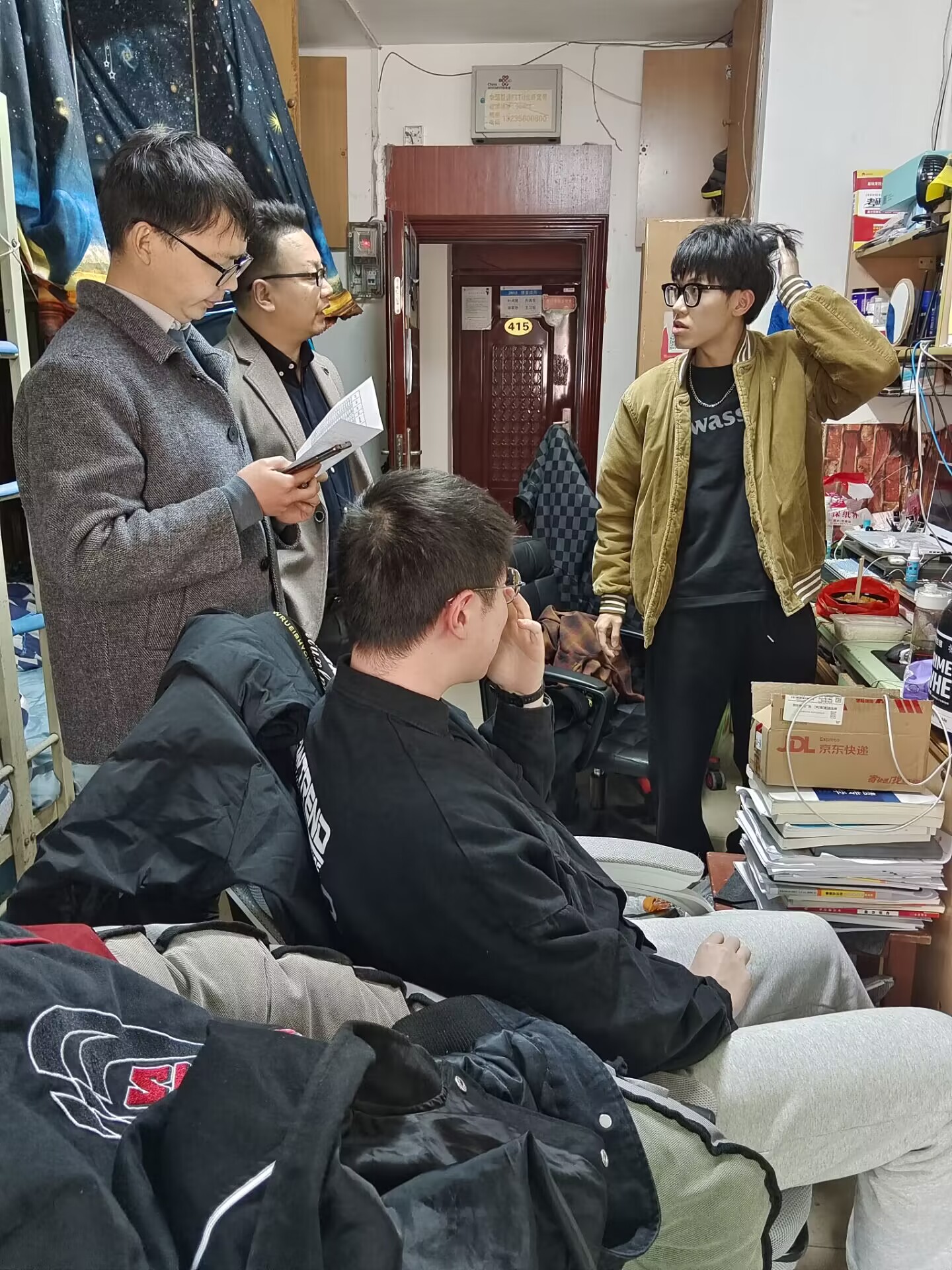 3月10日,教育部同时发布《2023年全国硕士研究生招生考试考生进入复试的初试成绩基本要求》(国家分数线)。3月13日,77779193永利集团党委副书记尹小华、毕业班辅导员杨云锋关注并走访了学生宿舍,深入了解学生考试成绩和心理健康状况,并就考研复试给予指导帮扶。