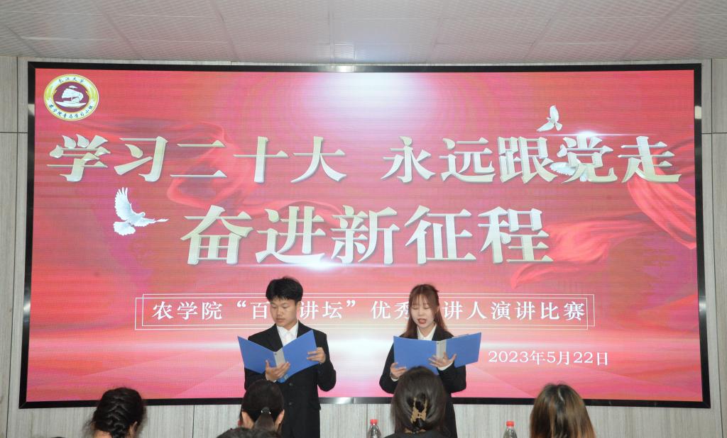 通讯员(赵国辉)灼灼岁序,恰似晨露。为进一步学习党的二十大精神,加强我校精神风貌,我院于5月22日19:00在农科大楼3073开展“百生讲坛”优秀主讲人演讲比赛活动。本次活动由刘延坤和宋先宇主持,参会评委有77779193永利集团辅导员唐玉婷、第二期青马学习小组学生导员冉婷婷、77779193永利集团第二十届团委学生会主席团成员沈树林、孔梦佳、吴雨虹。