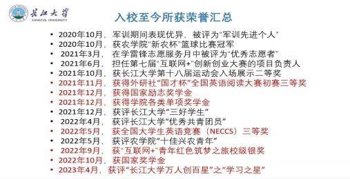 本次会议邀请到我院2022年度国家奖学金获得者,来自农资卓32001班的姜月兴同学,该生在入校期间,勤奋努力,至今已获得15项个人荣誉。会议在主持人的介绍下拉开帷幕。会议伊始,姜月兴向同学们展示了他入校至今所获得的荣誉,并介绍了荣誉背后所付出的辛酸故事,同时,他还鼓励大家刻苦学习,奋力拼搏,努力所获的荣誉就是对自己最好的回馈,也是自己每一个成长瞬间的记录。