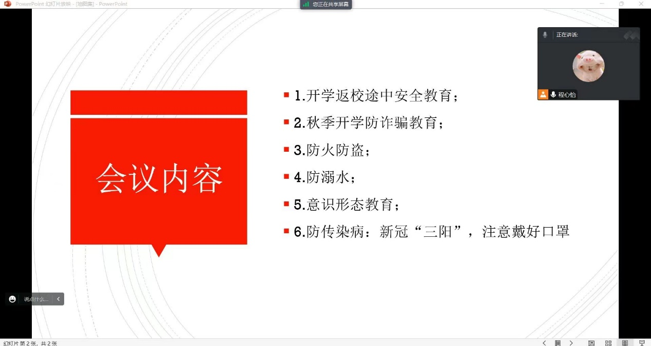 (通讯员 武芊睿 郑艳坪)新学期开学之际,为切实增强学生的安全防范意识和避险能力,保障学生安全,确保秋季学期开学工作平稳有序,我院于8月18日至8月21日组织召开了以《梦想起航,安全至上》为主题的开学前安全教育班会,立足本学期工作重点,围绕新生开学线上报到流程及注意事项、学生来校前安全教育及秋季开学学院学生教育教学事项告知等三个方面开展了形式多样、内容丰富的主题班会。