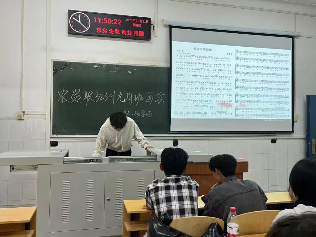 校歌是学校精神和传统的重要载体,是大学文化的一张闪亮名片。9月21日下午,农资职32301班以庆祝母校合并组建20周年为契机,一齐学唱《长江大学校歌》,让校歌深入人心。主持人杨宇泽带领同学们学习习近平总书记同团中央新一届领导班子集体谈话时的重要讲话精神相关内容,在视频结束后同学们积极发表了自己的感想及自己对未来的规划,并明确表明自己坚定的爱国之情。“作为新时代的青年,生于此时代,倍感荣幸。尤其是刚步入大学,更是感到建设祖国的重任落在肩头。”农资职32301班同学说道。