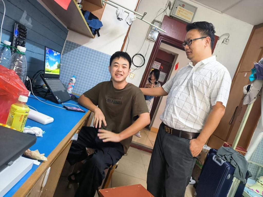 在大四学生的寝室,辅导员侯聪详细询问了他们的未来规划,与同学们深入探讨了有关于学业规划、就业准备等话题。给他们提供了一些建议和指导,帮助同学们更好地规划未来。