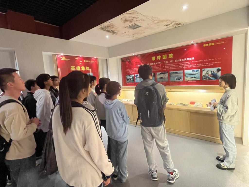 讲解员首先向来参观的同学们介绍了长江大学名人馆中的优秀校友,他们勉励同学们向名人馆中的优秀校友学习,还与同学们共勉,共同发扬长江大学“求实、进取、创业、报国”的精神,然后根据纪念馆内的图像资料及英雄遗物向同学们详细介绍了“10·24”英雄事迹:15名英雄舍己为人,敢为人先,组成“人链”救下落水儿童,3名同学英勇牺牲。在场的学生无不眼眶泛红,致敬、默哀、鞠躬,同学们纷纷表示了对英雄的深深敬意。最后,讲解员呼吁大家珍惜生命,不到长江游泳,莫让悲剧重演。