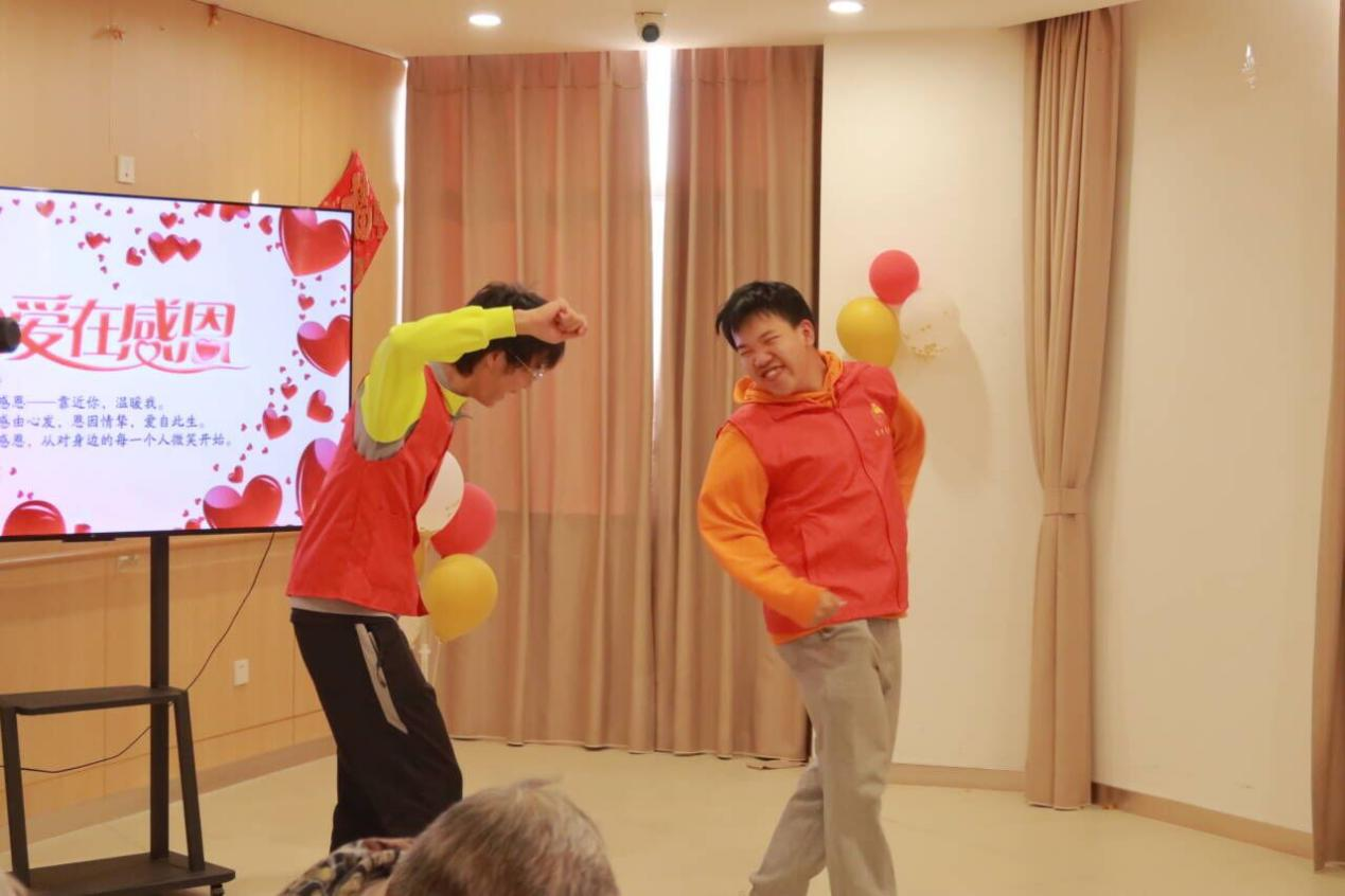 节目表演结束后,工作人员安排了短暂的中场休息。在休息时,有老人自发为志愿者们送来了水果,还有的老人卯足了劲儿也要为志愿者们送上一段表演,这一幕令志愿者们备受感动,也让老人与志愿者们的感情更加真切、深挚。