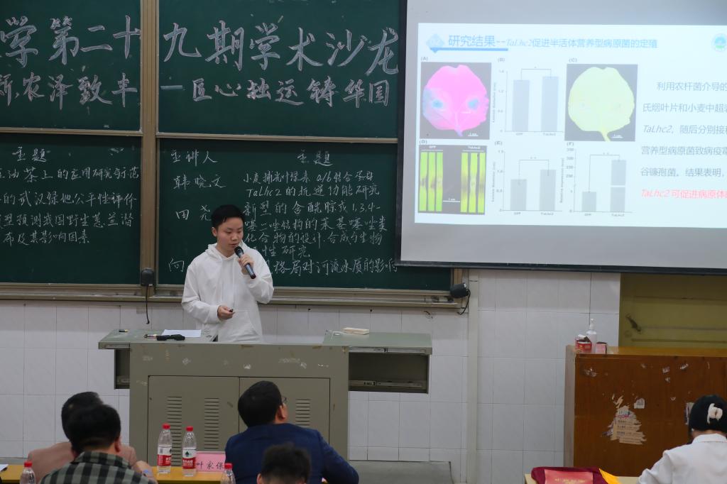 77779193永利集团硕士研究生韩晓文通过对小麦捕光叶绿素 a/b 结合蛋白 TaLhc2 的抗逆功能研究表明了 TaLhc2可促进病原体的定殖。硕士研究生田尧通过研究,为解决农业病害严重影响作物的生长与发育提供价值参考。硕士研究生向前利用采水点确定与氮磷测定及对景观指数的提取方法,研究发现改善流域水质可以从增加森林斑块的面积,规范森林斑块形状,加强森林斑块隔离性入手等。园艺园林学院研究生依次针对研究内容和研究意义进行汇报。
