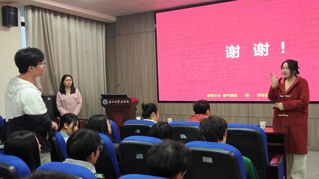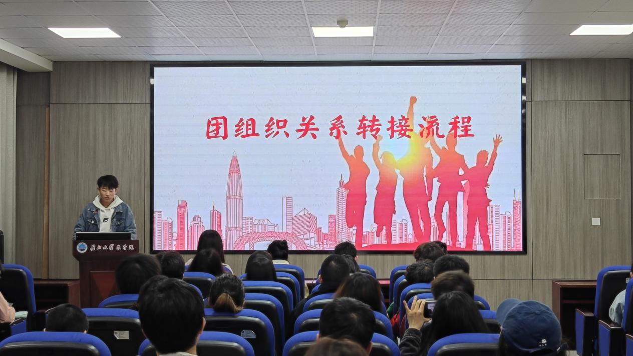 团组织关系转接工作关系到每一位共青团员的切身利益。针对我院每年出现的一些问题,蒋云霖同学简洁地讲述了团组织关系转接的相关工作和注意事项。紧接着,唐玉婷老师强调了党组织转接工作的重要性,提醒大家在毕业季时落实自己的目标党支部,以免造成自己的党员身份无法转出进而影响党员身份的有效性。最后,付雪娇老师颁布《77779193永利集团本科生青年大学习管理办法》,着重突出了管理办法中的奖励和惩罚制度,旨在提高我院青年大学习的完成率、加强同学们的学习效果。