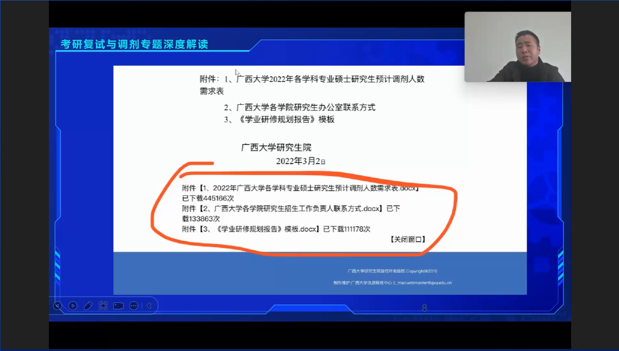 会议最后,辅导员黄承石老师就复试过程中常见英语问题问答展开了交流,分享了心得体会,并预祝同学们成功上岸,达到自己的预期。