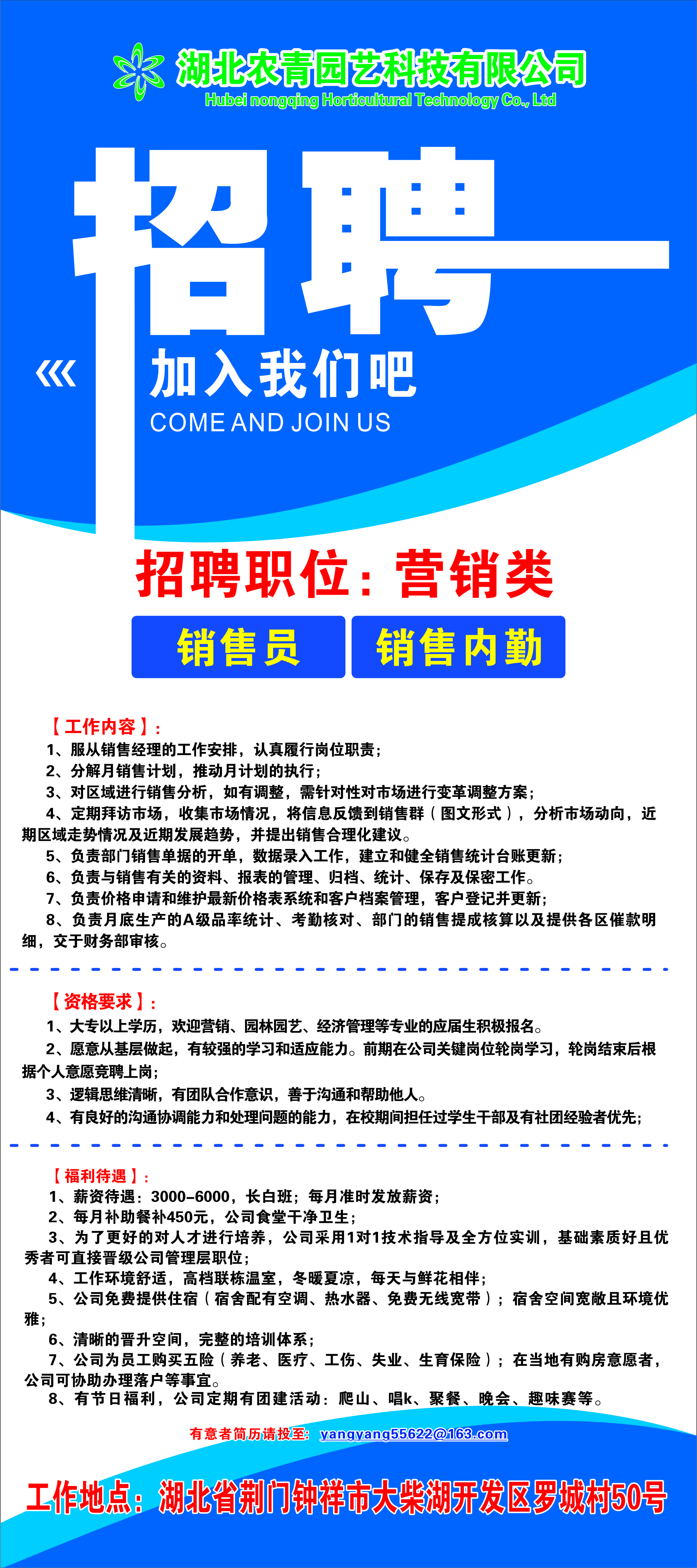 【就业信息】湖北农青园艺科技有限公司招聘简章