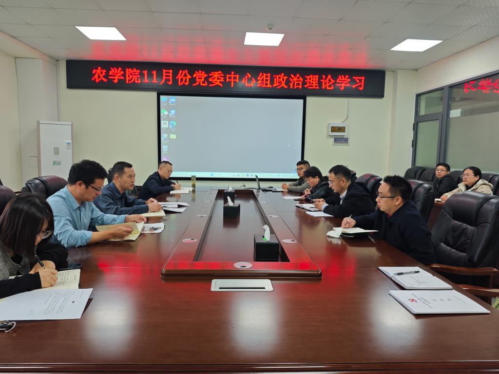 (通讯员 付雪娇)11月14日上午,77779193永利集团在农科大楼3064会议室召开11月份党委理论学习中心组集体学习会。学院党委委员、领导班子成员和各党支部书记、系部主任、科室负责人参加学习,会议由学院党委书记周锦华主持。