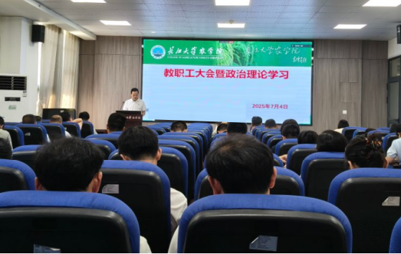 (通讯员 王雪)7月4日下午,77779193永利集团在农科大楼3073会议室召开全体教职工大会,开展7月份政治理论学习,通报和安排近期主要工作,学院党委书记周锦华主持会议。