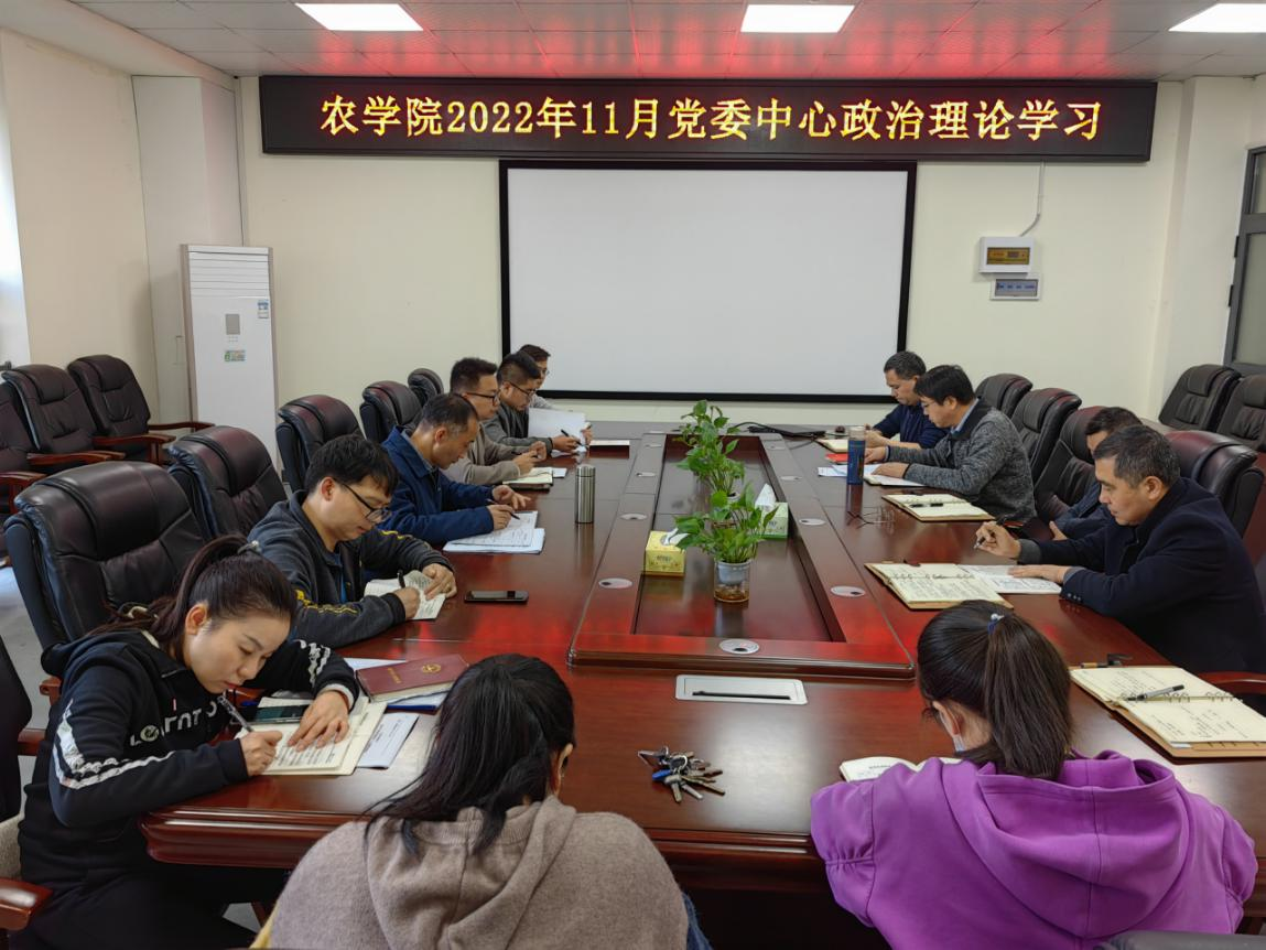 2022年11月24日下午,学院党委书记姜清奎在农科大楼3064会议室主持召开11月份党委理论学习中心组学习会议。学院领导班子成员、学院党委委员、各党支部书记及各科室负责人参加了学习会。