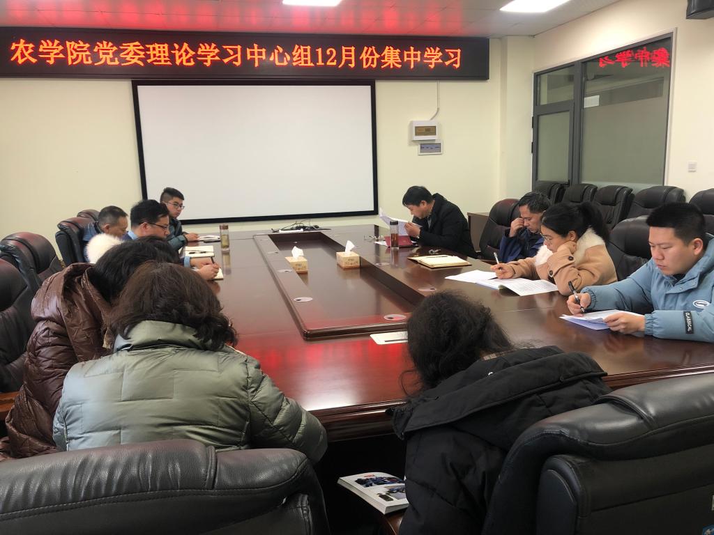 12月19日下午,学院在农科大楼3064会议室召开了12月份党委理论学习中心组集体学习,学院全体领导班子成员及党委理论中心组成员参会,会议由党委书记姜清奎主持。
