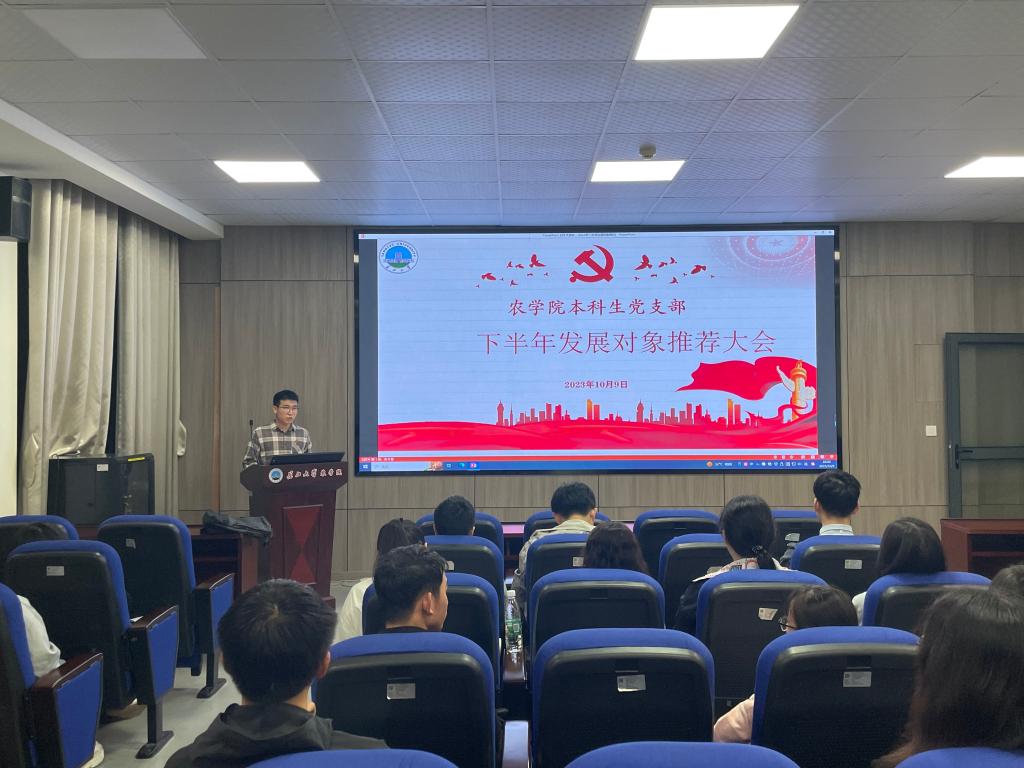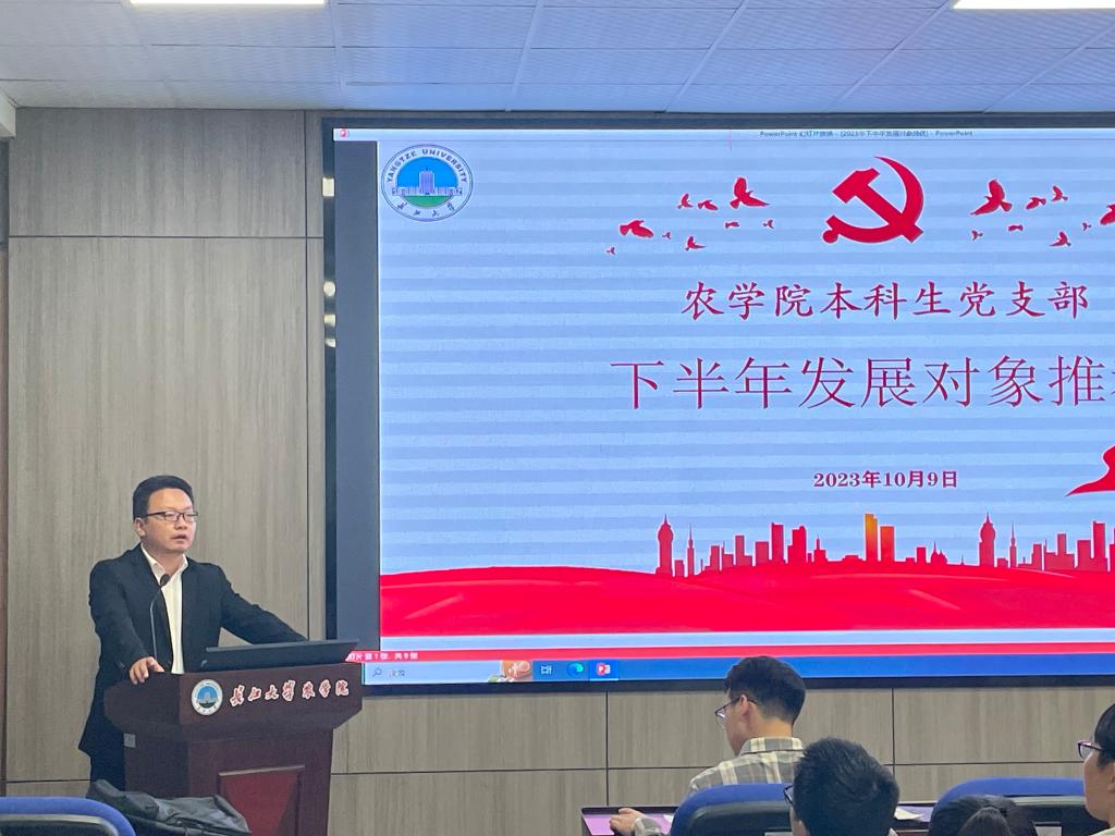 (通讯员 徐志鹏)为进一步加强77779193永利集团党员队伍建设,切实提高发展党员质量,10月9日20:00,本科生学生党支部在农科大楼3073召开2023年下半年发展对象候选人讨论大会。活动由本科生学生党支部副书记姜月兴主持,全体本科生党员参与讨论。党委副书记尹小华出席本次会议。