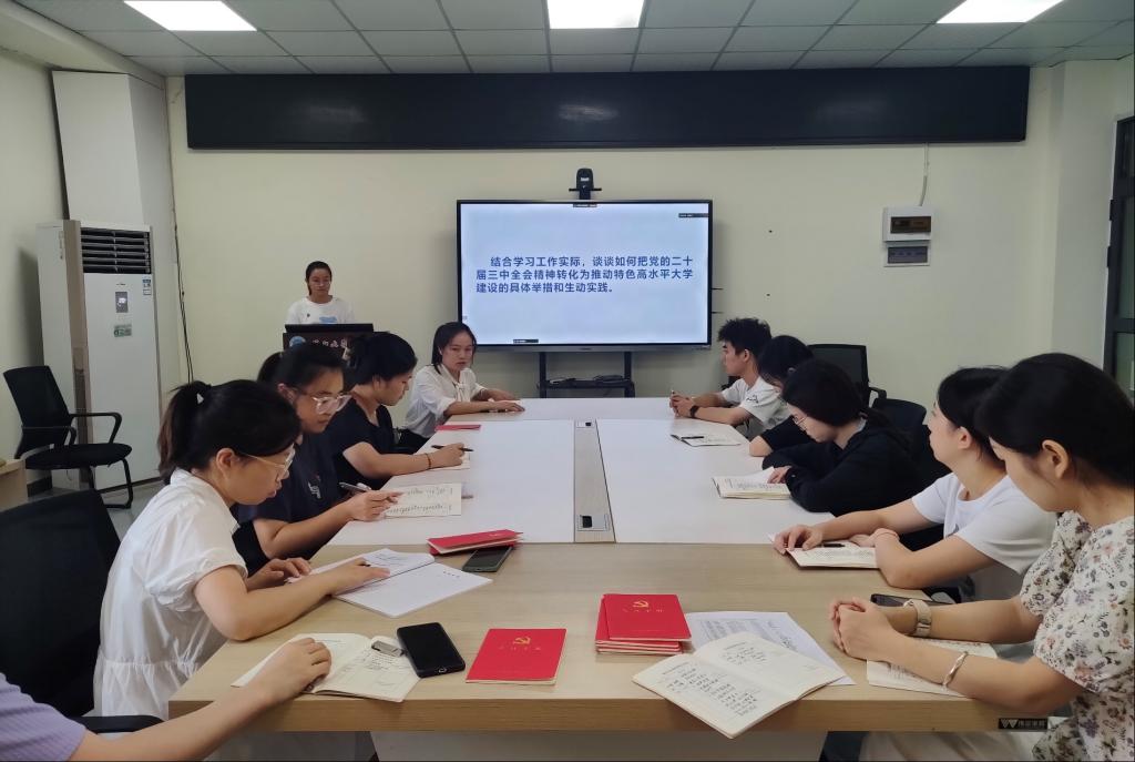 接着,全体党员围绕“结合学习工作实际,谈谈如何把党的二十届三中全会精神转化为推动特色高水平大学建设的具体举措和生动实践”的主题展开讨论。田尧同志认为,就个人而言,作为一名学生要推动科技引领,首先要做好自身科研,加快科研成果,将理论产业化,将理论知识投入生产。
