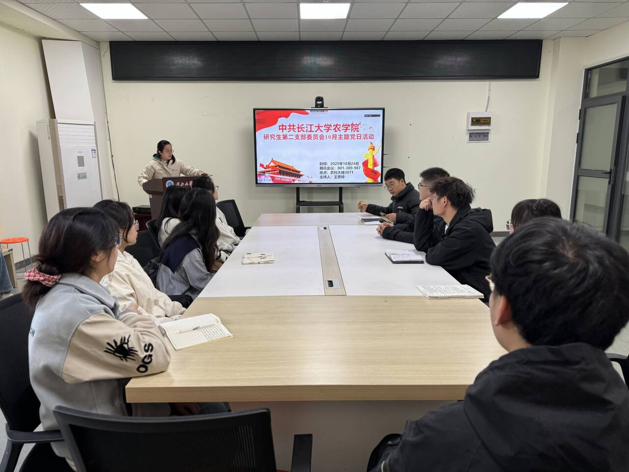 (通讯员 任娇 李嘉萍)10月24日,我院研究生第二党支部在农科大楼3071会议室开展10月份主题党日活动,活动结合腾讯会议(ID:655 880 636)同时在线上召开。全体在校党员和校外联培党员共同参与,活动由王思婷同志主持。