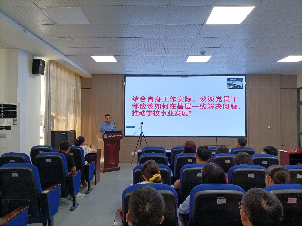 接着,全体党员以“结合自身工作实际,谈谈党员干部应该如何在基层一线解决问题,推动学校事业发展?”为主题展开研讨。邵四海副院长表示,为党员同志提出两点要求:一、做好表率,身先士卒,认清身份;二、不断前行,科研、政治理论齐下,实事求是,解决难题。侯聪书记谈到,党员同志要严于律己,以身作则,发挥模范作用,走进本科生团、党支部,从思想、学习以及生活上给予他们帮助和引导。