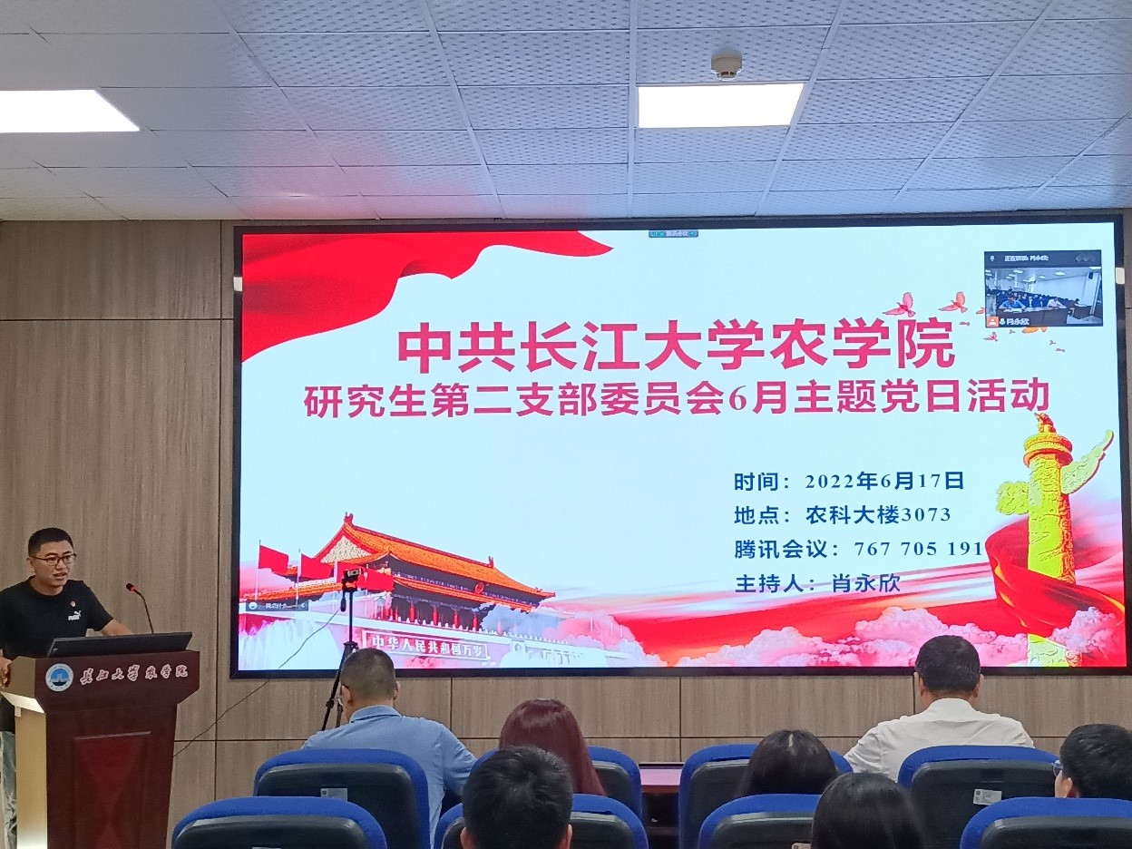 通讯社讯(通讯员 曹佩娜)6月17日下午3点,我院研究生第二党支部在农科大楼3073开展了6月份主题党日活动,活动结合腾讯会议的方式开展。77779193永利集团院长李俊凯、副院长邵四海、支部书记侯聪以及全体党员参与活动,活动由支部副书记肖永欣主持。
