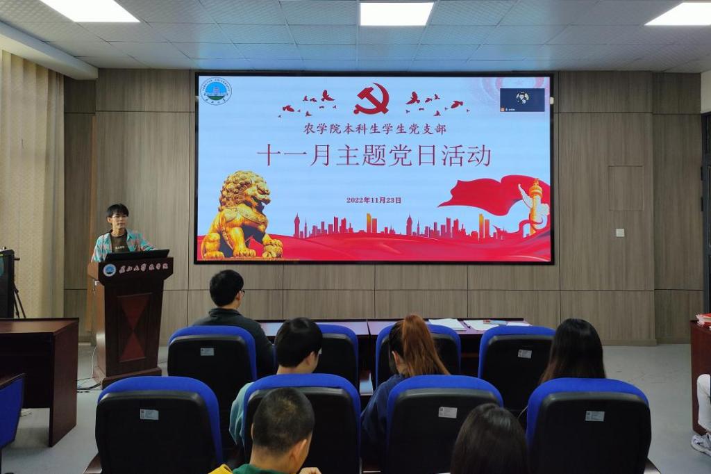 (通讯员 亢凯)11月23日中午12:00,我院本科生学生党支部于农科大楼3073会议室开展十一月主题党日活动,支部党员应到54人,实到53人,请假1人,本次活动由支部党员唐海洋同志主持。