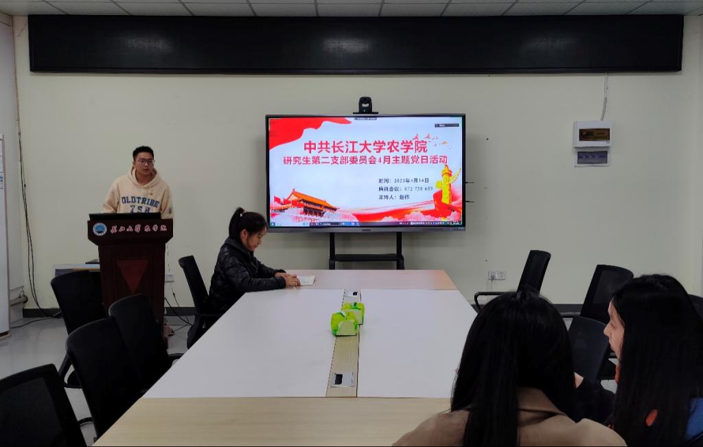 (通讯员 曹佩娜 宋梦圆)4月24日下午3点,我院研究生第二党支部在农科大楼3071开展4月份主题党日活动,活动结合腾讯会议同时在线上召开。全体在校党员和校外联培党员共同参与,活动由赵伟同志主持。