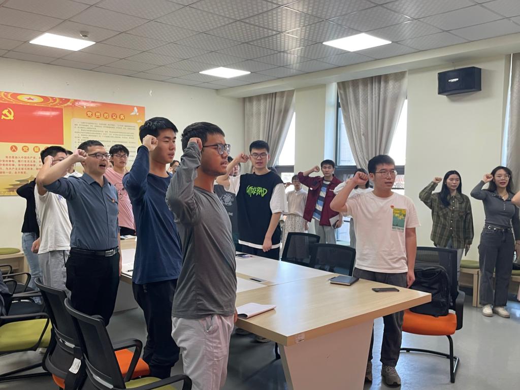 会议伊始,组织委员习小杰同志带领全体党员重温入党誓词。随后,姜月兴同志对本月党费缴纳情况进行了说明。紧接着,在黄天宇同志的带领下集体诵读学习《党章》第八章“党的纪律检查机关”相关内容。在讲授微党课推进中国式现代化需要处理好的重大关系时,孔梦佳同志详细讲述了顶层设计与实践探索的关系、战略与策略的关系、守正与创新的关系、效率与公平的关系、活力与秩序的关系、自立自强与对外开放的关系等六个方面的内容。