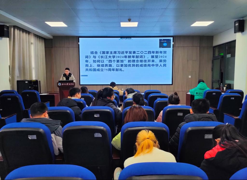 接着,全体党员以“结合《国家主席习近平发表二〇二四年新年贺词》与《长江大学2024年新年献词》,展望2024年,以“四个更加”的理念继往开来、乘势而上、继续奔跑,以更加优异的成绩向中华人民共和国成立75周年献礼。”为主题展开研讨,严晓羽同志认为作为新时代的党员,我们的理想信念要更加坚定,纪律意识要更加增强,思想要加牢固,工作作风更加务实。韩晓文同志认为在座的研究生们要砥砺前行,继续奋斗,珍惜在校的学习机会,不要虚度光阴。王思婷同志认为除平时的科研生活以外,需关注一些国家大事,了解国际形势,在平时工作中用一些创新性的方法,取得创新性的成果。