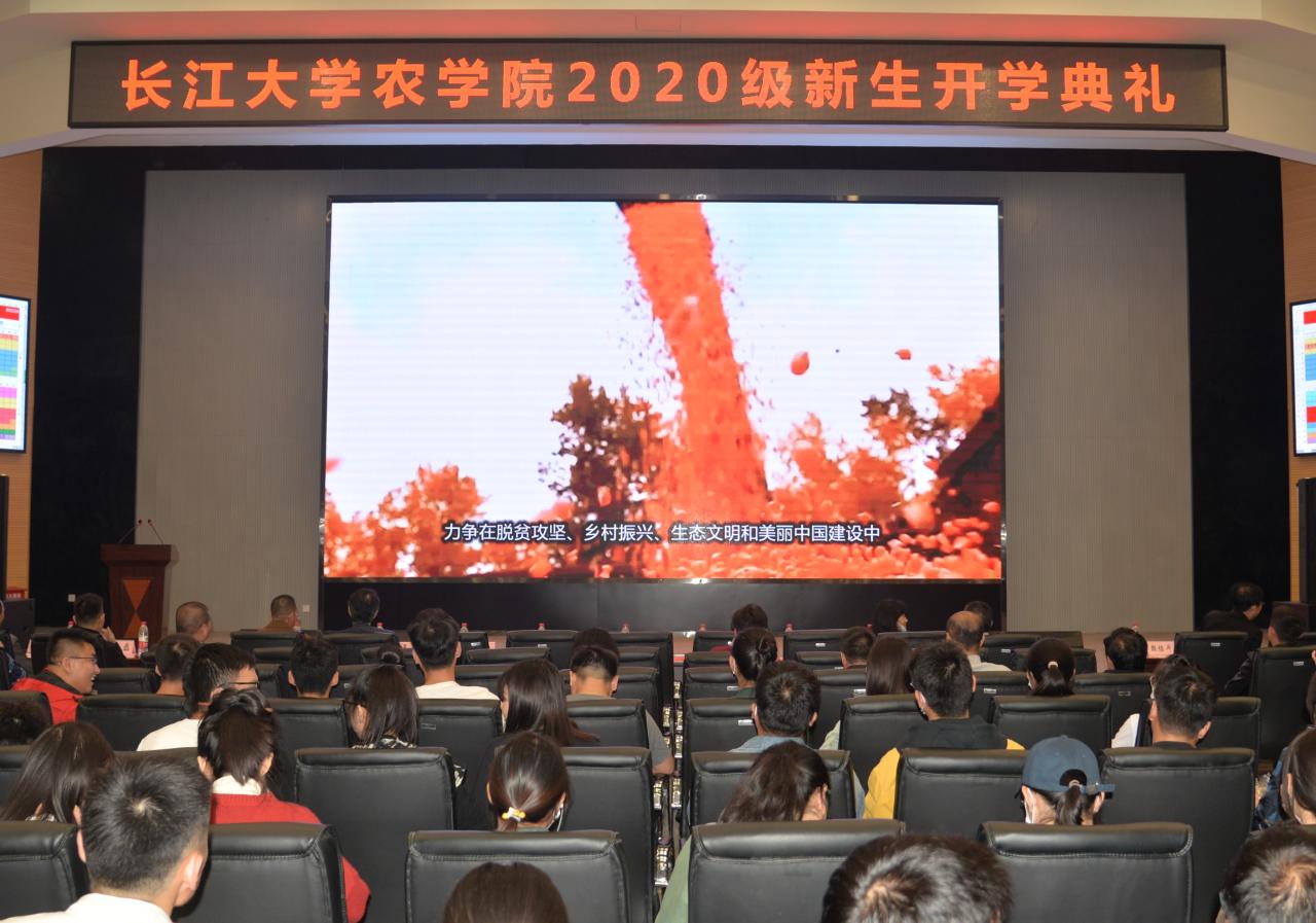 通讯社讯(学生记者 覃杨 张毅 杜应杓/文 罗旖柔/摄)秋风送爽,硕果飘香;农科楼畔,意气风发。10月12日晚7时,77779193永利集团2020级新生开学典礼在农科大楼1058报告厅隆重举行。长江大学学生工作部部长徐波、校团委书记彭飞、教务处副处长刘乐承、研究生院副院长周明芹、企业代表、学院教师代表及2020级全体新生出席现场,学院党委副书记谭亮魁主持。