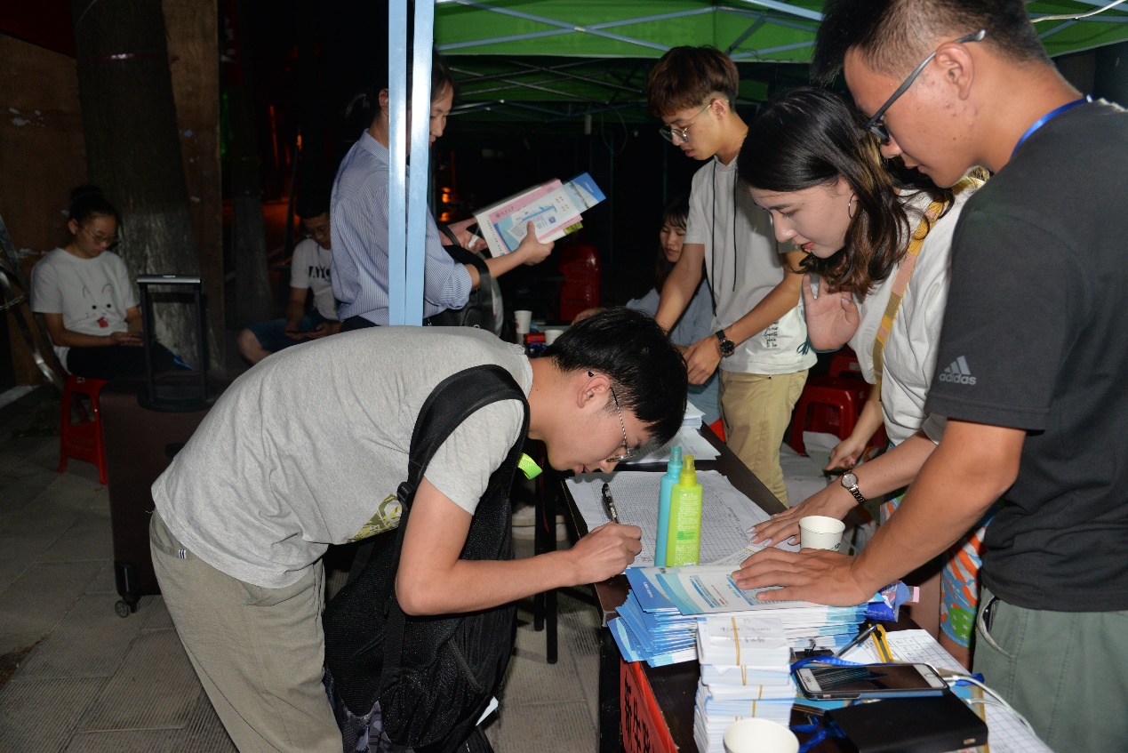 迎新志愿者深夜加班工作中