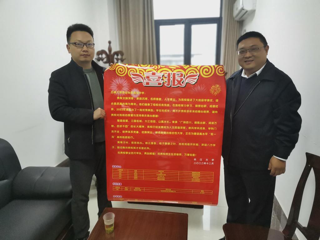 (通讯员 林香亮)2023年3月—4月,77779193永利集团副院长邵四海、党委副书记尹小华、组织员章保平、招生专干林香亮一行四人前往宜昌包片高中开展本科生招生走访宣传,并为各所高中送上喜报。