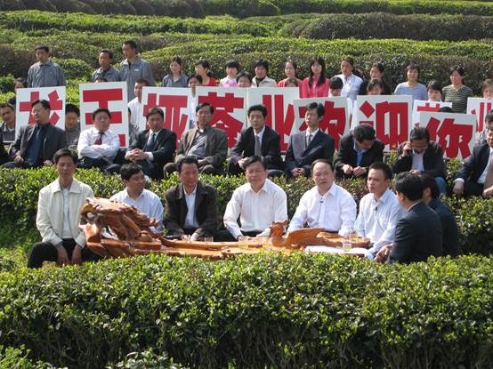 近日,在我校83级校友、湖北龙王垭茶业有限公司总经理郭承君的带领下,我们参观了位于湖北省十堰市竹溪县南部山区的龙王垭茶场万亩茶园。郭承君向我们介绍道:“公司现有职工628人,总资产4.38亿元,建有生态有机茶园2.3万亩,联营中小茶场25个,总面积11万亩,年产茶叶30多万公斤,年销售额2.34亿。”